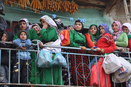İlk şaşkınlığı da sofrada yaşadım. Önümüze konan yiyecekler klasik düğün yemeklerinden değildi. Sanki bir iftar sofrasıydı. Lahana sarmasından kuru fasulyeye nefis bir sofra. Düğün giysilerini giymiş genç kızlar, gelinler hizmet ediyorlardı. Müthiş güzeldi giyimleri. Rengârenk işlikler, şalvarlar, başörtüler. Bütün fotoğrafçılarda atlatma fotoğraf çekme huyu vardır. Maalesef bende de var. Arkadaşlar yemek yerken sofradan kalktım. Ev sahibi de kalktı benimle birlikte. Ordaki kızların, gelinlerin fotoğraflarını çekmek için izin istedim. Evde iki genç ve damat da vardı.