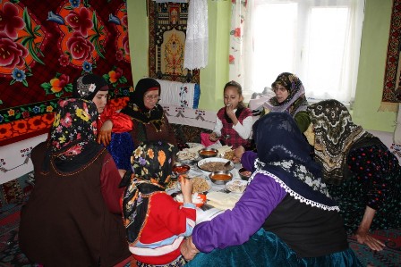 İlk durağımız düğün evi oldu. Tertemiz döşenmiş bir odaya alındık ve hemen sofra kuruldu.