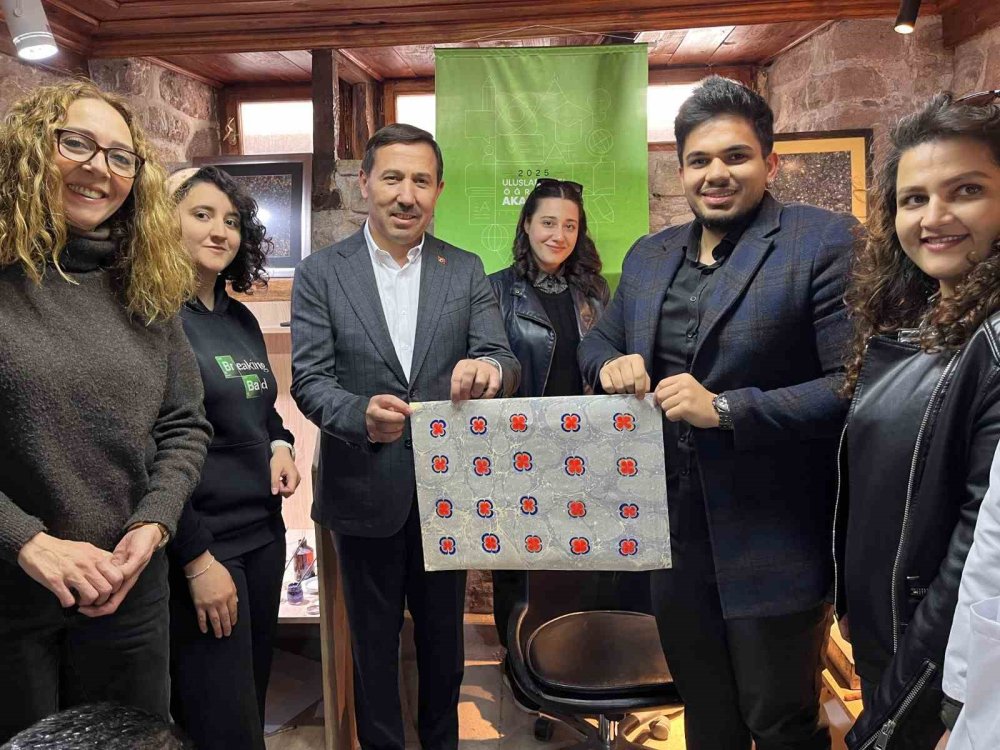 Karatay Sanat Merkezi'nde düzenlenen Geleneksel Sanat Kursları kapsamında, Konya'daki üniversitelerde eğitim gören yaklaşık 150 yabancı öğrenci, Türk-İslam sanatları ile tanışıyor. Başkan Hasan Kılca, kursiyerlerle bir araya geldi.