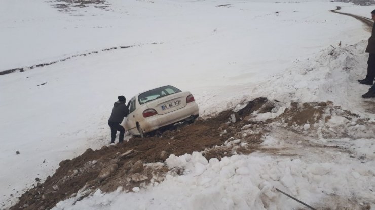 Van'ın Özalp ilçesine kaza yaparak yoldan çıkan otomobilin yardımına Van Büyükşehir Belediyesi karla mücadele ekipleri yetişti.