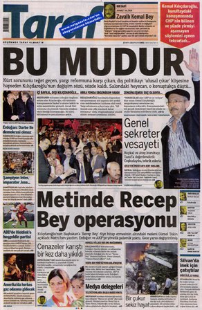 Taraf gazetesi Kemal Kılıçdaroğlu'nun kurultay konuşmasından pek memnun kalmadı. İşte Taraf'ın ilginç manşeti