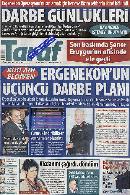 Taraf şimdi de Ergenekon'un tutuklusu Şener Eruygur'un Jandarma Genel Komutanlığı'nın son günlerinde hazırladığı ve öncekilere göre çok daha keskin ifadeler, somut şahıs isimleri içeren 'Eldiven' kod adlı darbe planını yayımladı. Plan, 1 Temmuz'da Eruygur'a ait evrak arasında bulundu.