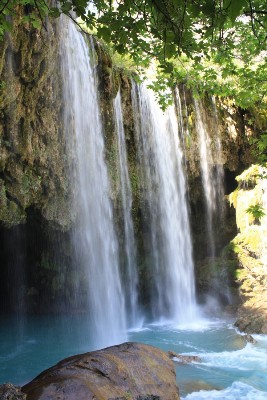 Çaylarımızı içtikten sonra Yerköprüye doğru yola düştük. Gerçekten geçtiğimiz yerler yalancı dünyanın cenneti, dedirtiyordu. Ermenek Yerköprüsü Hadim Yerköprüsü’nün bir eşi ama daha bir vahşi güzelliği var. Gezendi barajından inen sular sarp kayalıkların arasından bir düdene girdikten sonra beş/altı yüz metre aşağıda yeniden günyüzüne çıkıyor. Yukardan ise başka bir kaynaktan gelen sular çağlayan oluşturuyor.