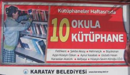 Bu panodan ne anlamamız gerekiyor? Karatay’da kaç tane okul var ki siz 10 tanesine kütüphane yaptırdınız! Bu okullar nerede? Bu okullara ne tür kitaplar koydunuz? Bu sorular bir halkla ilişkiler kampanyası gerektirir. Bir panoyla çözümlenemez.