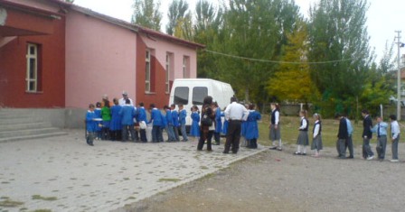 Konya'nın Beyşehir ilçesinde faaliyet gösteren Aşağı Esence İlköğretim Okulu'nda eğitim gören yaklaşık 125 öğrenciye öğle yemeği veriliyor.