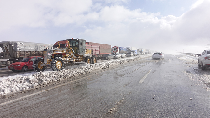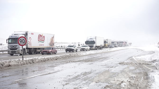 Kaza nedeniyle yolda araç kuyruğu oluştu. Uzun süren uğraşlar sonucunda kazaya karışan araçlar çekilerek, kara yolu yeniden trafiğe açıldı.