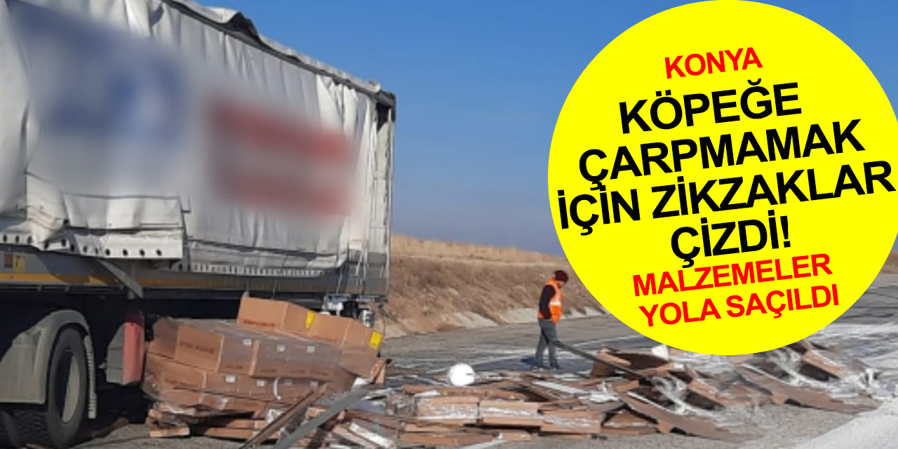 Konya'da bir yola fırlayan köpek vakası daha! Manevra yapan tırdaki malzemeler yola saçıldı
