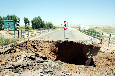Hafta sonu bölgede etkili olan sağanak nedeniyle Beyşehir-Isparta kara yolunun 3. kilometresindeki Sarısu Çayı Köprüsü'nün bir bölümü çöktü.