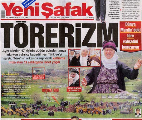 Koru'ya göre bugünkü gazetelerde yer alan töre terörizmi kavramının çok yanlış bulduğunu ifade ederek 'Ancak bugün töre cinayeti diye manşetlere verildi. Bunun töre ile ne alakası var. Dünya ve Türkiye de dahil yüzüne maske takmış yani kendini gizleyen insanların töre adına bir şey yapması beklenemez. Hele namaz kılan insanları öldürmek ve de çocukları öldürmek hangi törede var. Kendi yaptığını PKK'ya mal edecek bir anlayış terör olur, töre olmaz. Herhalde bunun üzerinden zaman geçince adını koyacaklar' dedi.