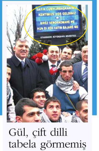 Gazeteciler.com sitesinin haberine göre Ortadoğu gazetesi 31 Aralık 2010'da manşetten bir fotoğraf kullandı. Fotoğrafta Abdullah Gül ve Osman Baydemir, folklor ekibinin gösterisini izliyor. Arka detayda ise İKİ DİLLİ BİR TABELA yer alıyor. Manşet başlığı da bu tabelaya dikkat çekecek şekilde atılmış: İKİ DİLLİ KARŞILAMA...