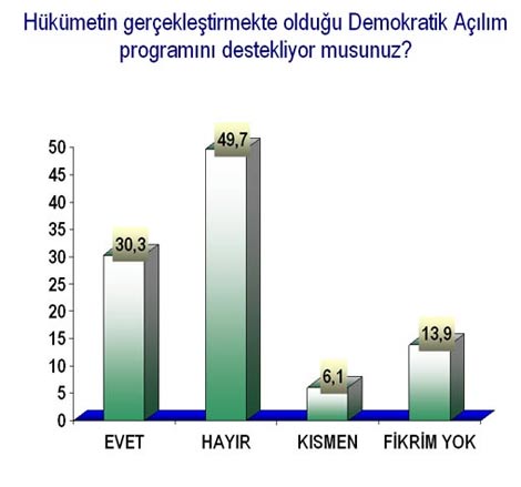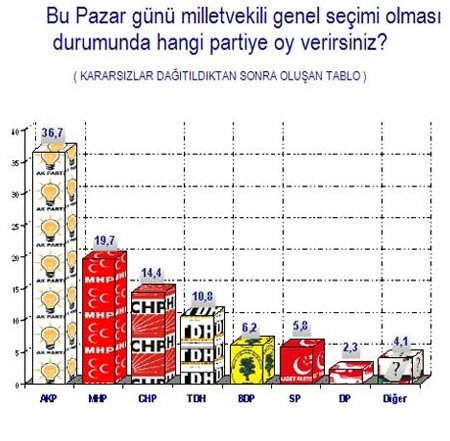 ANDY-AR Sosyal Araştırmalar Merkezi'nin Ocak 2010 anketine göre "Bu pazar seçim olsa" Ak Parti yine birinci parti... Ancak ikinci parti MHP olarak görünüyor. CHP'nin oy oranı yüzde 14,4'lere kadar düşmüş. Zira Sarıgül hareketinin bir yükselişi var!