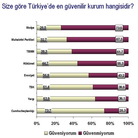 Bu anketin sonucu da MHP'yi sevindirecek cinsten... Ama ikinci dikkat çekici nokta ise en güvenilir kurum hangisi sorusuna verilen yanıt!