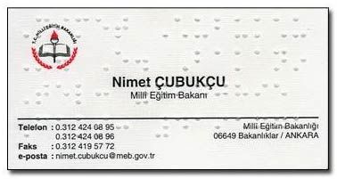 Çubukçu'nun özel olarak bastırdığı bu kartvizitlerinin, Latin alfabesiyle basılan kartlardan içerik olarak hiçbir farkı bulunmuyor. Brail alfabeli kartvizitlerde de Çubukçu'nun, adı, soyadı, Milli Eğitim Bakanı olduğu, telefon ve faks numaraları, mail adresi ve Milli Eğitim Bakanlığı'nın adresi bulunuyor.