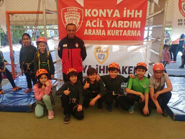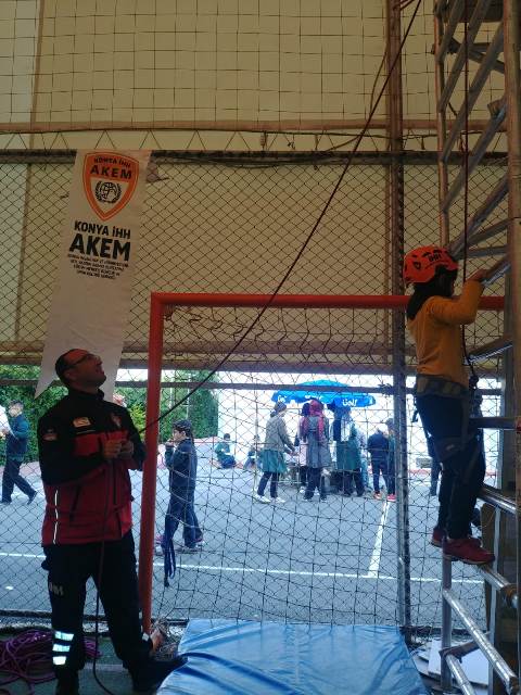 Konya İHH Arama Kurtarma Ekibi, Özel Model Kolejinde iki gün süren kermeste öğrencilere kurulan tırmanma duvarında iple iniş ve tırmanma faaliyeti gerçekleş