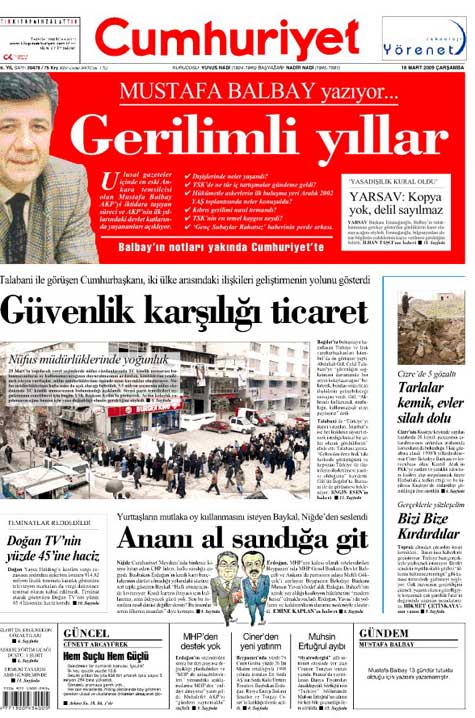 Balbay’ın Günlüklerinin ortaya çıkmasından sonra Cumhuriyet Gazetesi bugün çok ilginç bir manevra yaptı ve “Mustafa Balbay yazıyor… Gerilimli yıllar” başlıklı bir yazı dizisi başlatacağını duyurdu. Yazı dizisinin anonsunu bir yazı dizisine ayrılmayacak büyüklükte 1. Sayfasından kırmızı fontla devasa boyutta veren Cumhuriyet Gazetesi, Balbay’ın sözkonusu notları “aslında yazı dizisi yapmak için” tuttuğunu anlatmak istiyordu.