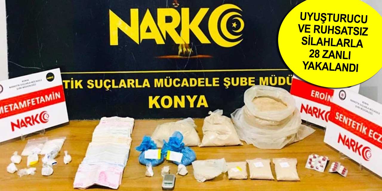 Konya’da zehir operasyonu! 4 farklı tür uyuşturucu ve silah yakalandı