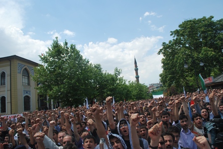 İsrail Gazze’ye giden yardım gemilerine yaptığı saldırıyı sert bir dille eleştiren Saadet Partisi İl Başkanı Av. Veli Tolu, İskenderun’daki şehit olaylarının ve İsrail’in düzenlediği hain saldırının aynı odaklar tarafından yapıldığını iddia etti. Yaşanan olayları Firavun’un Hz. Musa’ya, Hz. İsa’ya ve Hz. Muhammed’e yaptığı saldırılara benzeten Tolu, “İsrail’in yaptığı bu kahpe saldırıyı şiddetle kınıyoruz. Kimse bu olaylara tepkisiz kalamaz. Onların güçleri askeri bakımdan güçlü olmalarından kaynaklanmıyor, onların gücü siyasi ve politik açıdan onları destekleyenlerden kaynaklanıyor. Görünürde tek gibi görünseler de aslında onlar bir araya gelen bir tek vücut gibidirler. Her dönemde allayıp pullayıp önümüze projeler sunuyorlar. O Obama değil mi Irak’ta, Afganistan’da ve Pakistan’da Müslüman kanı dökmeye devam eden. Bizler dökülen Müslüman kanlarının intikamını sonucu ne olursa olsun alacağız. Ve biz yine biliyoruz ki bu intikamın alınmasının tek çaresi de tek vücut olabilmek ve birlikte olabilmektir. Allah bu konuda hepimize basiret ve güç versin. Bu acı hepimizin ve bu acıyı hepimiz paylaşıyoruz” diye konuştu.