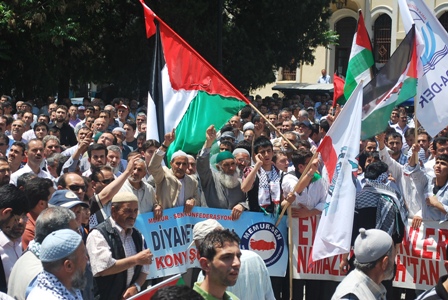 Konya Sivil Toplum Örgütleri Platformu İsrail’in Gazze’ye giden yardım gemilerine yaptığı saldırıyı mitingle protesto etti.