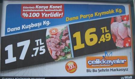 Geçen haftalarda Çelikkayalar açık turuncu renkli billboardlarla iletişime geçmişti. Ürün ve fiyatların görünürlüğü de düşüktü. Şimdi gökkuşağı renk yelpazesiyle iletişime geçiyor. Yeşilli, mavili, kırmızılı, pembeli renklerle iletişim yapıyor. Bu reklamlarda en azından ürün ve fiyatlar görünür. Bu anlamda başarılı. Ancak renk dengesizliği hangi market olduğu algısına hizmet etmediği için bu reklamda başarısız reklam oluyor. Reklamlarda algıyı odaklamak lazımdır. Özellikle alışveriş merkezleri algıyı odaklamak konusunda daha çok çalışmalıdırlar. Çelikkayalara tavsiyem bu reklamlardaki doğruları devam ettirerek, yanlışları düzeltmeleri.