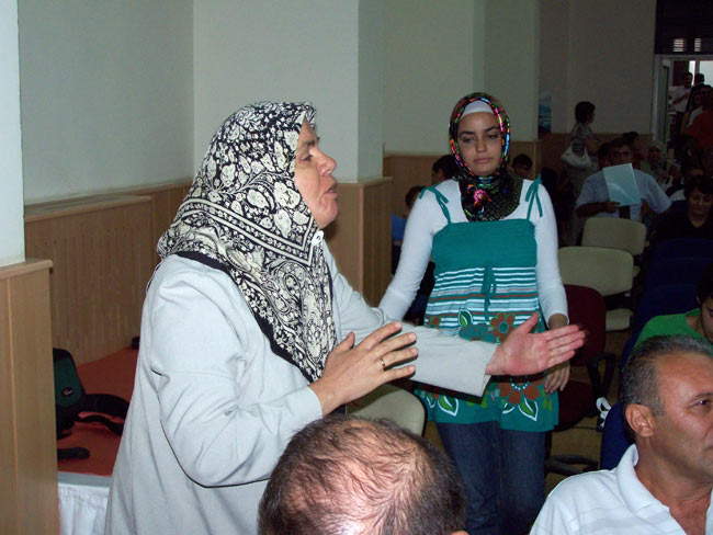 Kızının, mezun olduğu Aldemir Atilla Konuk Anadolu Lisesi'nden aranarak törene davet edildiğini aktaran anne Öztürk, "Kızımdan daha az puan alanlar buraya şortla, plaj elbisesi ile çıkabiliyor, ama benim kızım çıkartılmıyor." dedi. Öztürk, konuşmasını tamamlamadan görevliler tarafından kürsüden indirildi.