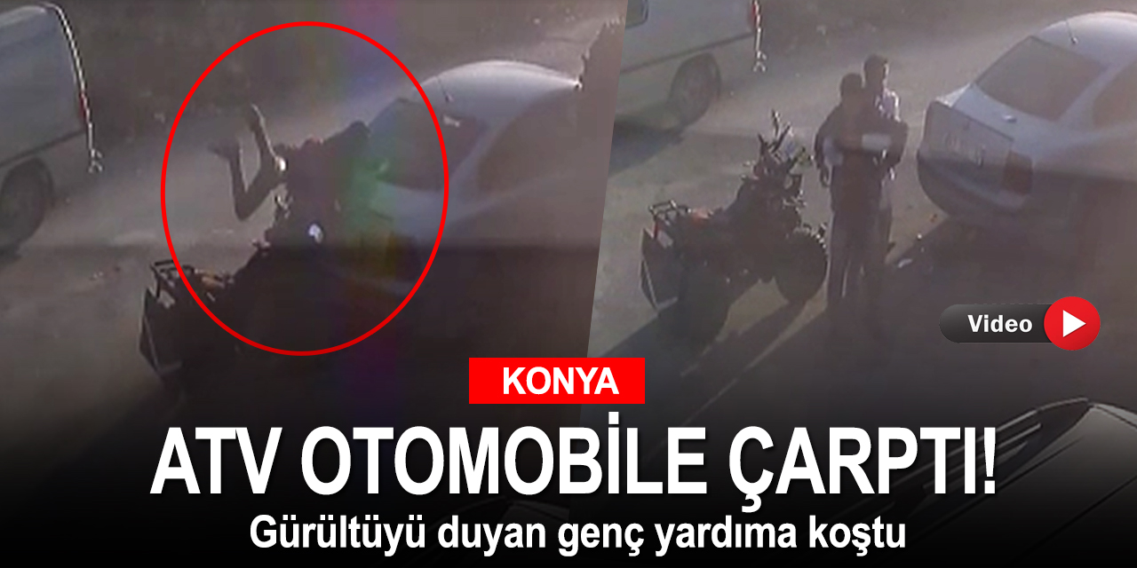 Konya'da ATV'nin otomobile çarpması saniye saniye görüntülendi! Suriyeli gencin yardımına koşan işçi böyle sakinleştirdi
