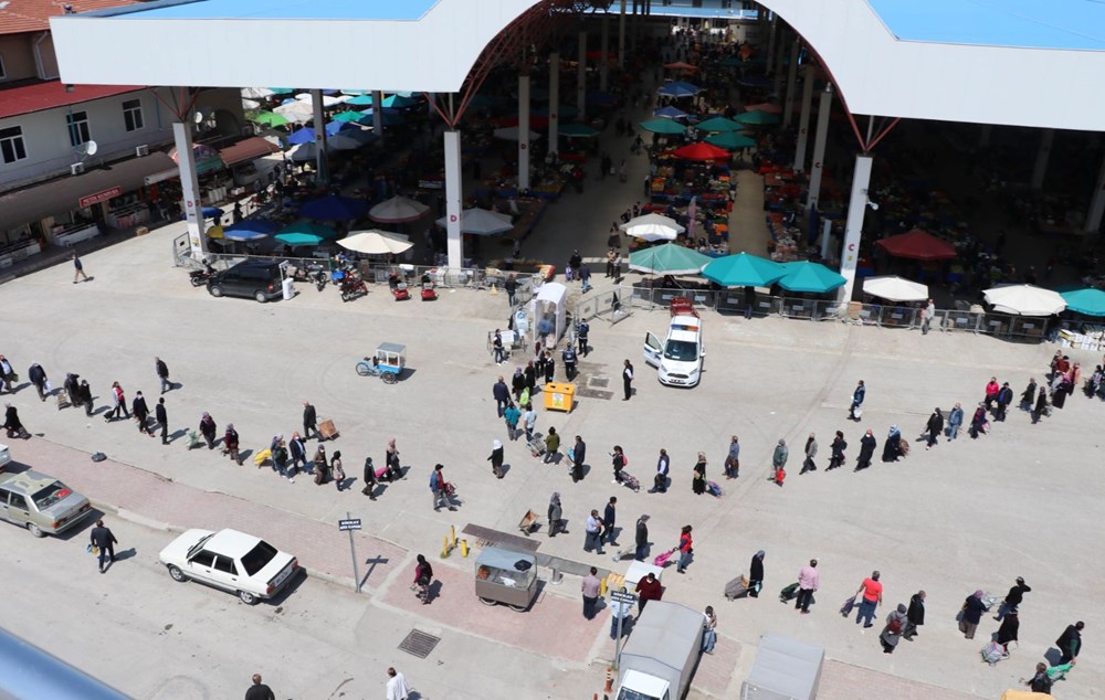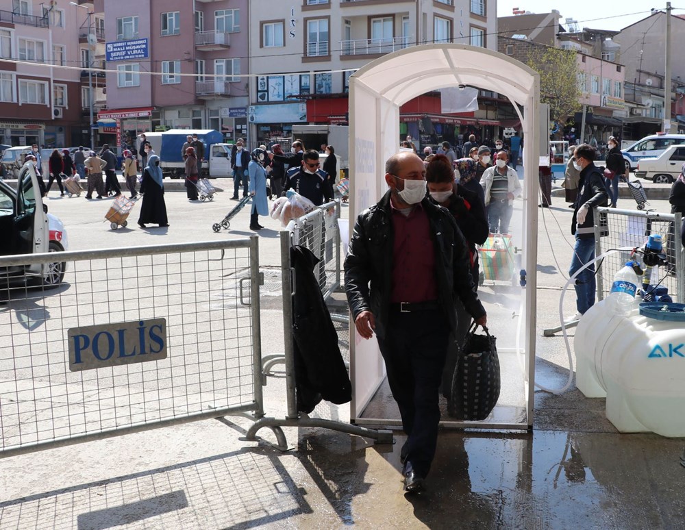 Girişte ateşleri ölçülen vatandaşlar, belediyenin kurduğu dezenfeksiyon tünelinden geçtikten sonra içeri alındı. Ekiplerin sosyal mesafeye uymaları konusunda sürekli uyarmasına rağmen zaman zaman vatandaşlar kuralları hiçe saydı.