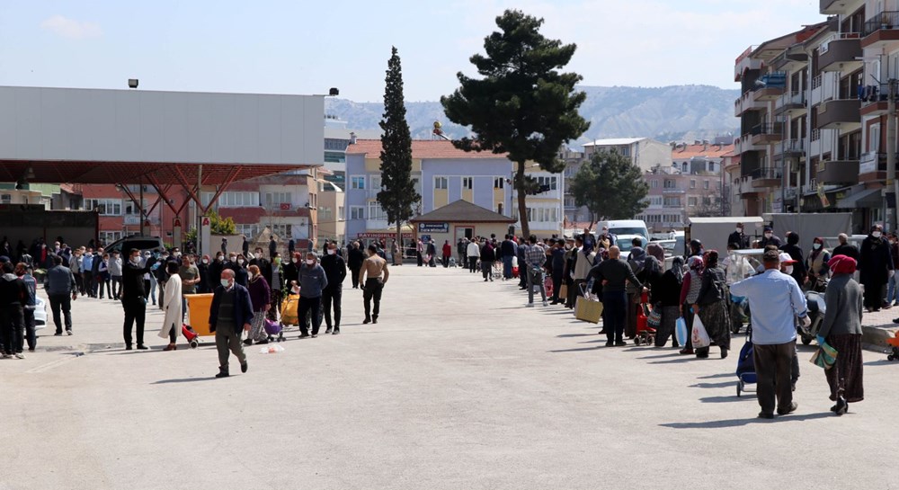 Burdur'da, salı günleri kurulan halk pazarına girişte Koronavirüs tedbirleri uygulandı. Ekipler, vatandaşların tek tek ateşini kontrol ederken, dezenfeksiyon tünelinden geçilerek girilen pazar girişinde yaklaşık 1 kilometrelik kuyruk oluştu.