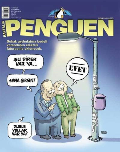 Ünlü mizah dergisi Penguen'e Başbakan Recep Tayyip Erdoğan ile vatandaş elektrik zamları kapak oldu.