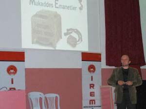 Saygı duruşu, İstiklal Marşı ve Kur'an-ı Kerim tilavetiyle başlayan programda Uğurluel, Topkapı Sarayı'ndaki kutsal emanetleri salonda bulunan izleyicilere sinevizyon eşliğinde tanıtarak, Osmanlı'nın asırlar boyunca kutsal emanetlere nasıl sahip çıktığını anlattı.