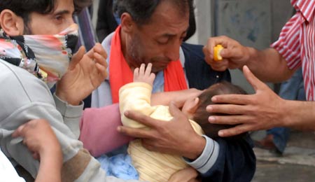Bir ilköğretim okuluna biber gazı düştü. Öğrenci ve veliler fenalık geçirdi... Bir evin üçüncü katındaki daireye de gaz bombası isabet etti. Evde bulunan anne ve bebeği hastanelik oldu.
