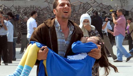 Sanırsınız savaş var. Okula gaz bombası atıldı. Bir ailenin evine de gaz bombası düştü. Sokaklar da savaş yeri gibi...