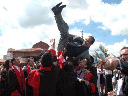 Selçuk Üniversitesi Kadınhanı Faik İçil Meslek Yüksekokulu’nda 2008-2009 eğitim öğretim yılının sona ermesi nedeniyle düzenlenen mezuniyet törenine katılan Rektör Prof. Dr. Süleyman Okudan, öğrenciler ve vatandaşlar tarafından coşkuyla karşılandı. Çiçekler ve Türk bayraklarının ardasında mezuniyet töreninin yapılacağı alana giren Prof. Dr. Okudan, kendisi için hazırlanan pastayı kesti, geleneksel mezuniyet pilavından yedi.