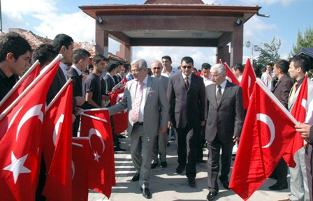 Rektör Prof. Dr. Süleyman Okudan, öğrenciler Çiçekler ve Türk bayraklarının ardasında karşılandı.