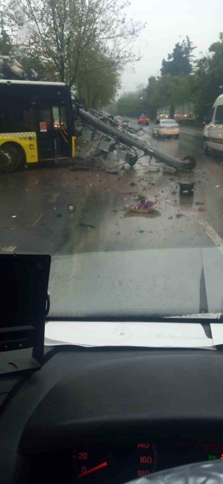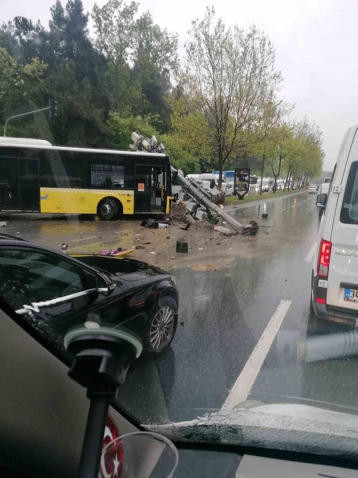 Sarıyer'de yağmur nedeniyle kayganlaşan yolda direksiyon hakimiyeti kaybedilen İETT otobüsü, önce Kent Güvenlik Yönetim Sistemi kameralarının bulunduğu direğe, ardından otomobile çarptı. Otobüsün boş olması nedeniyle faciadan dönülen kazada direk yola devrilirken, trafik yoğunluğu oluştu.