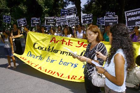 Emekçi Kadınlar Derneği adına yapılan açıklamada ise, "Vatan sağ olsun demiyoruz. Artık Yeter. Çocuklarımız ölmesin. Barış istiyoruz. Asker aileleriyle birlikte onurlu barış çığlığını büyütüp barış annelerinin uzattığı elleri tutmak istiyoruz. Bizler çocuklarımızın yakınlarımızın savaşta ölüm makinelerine dönüştürülmesine canavarlaştırılmasına ruhlarının sakatlanmasına dur demek için buradayız" denildi.