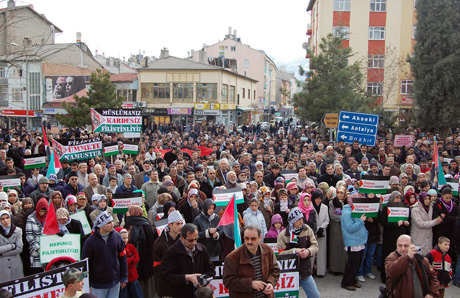 Seydişehir'de İsrail'in yaptığı katliamları kınamak amacı ile yapılan miting ve yürüyüşe çok sayıda vatandaş katıldı.