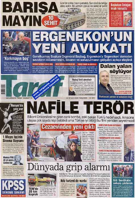 Taraf'ın manşeti gazeteler içinde en çarpıcı ve dikkat çekici olanıydı.