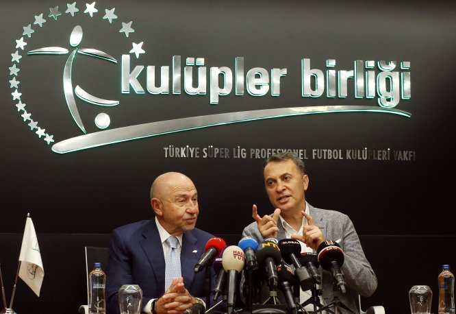 Kulüpler Birliği Vakfının Maslak'taki merkezinde, yeni Kulüp Lisans Talimatı'yla ilgili kamuoyunu bilgilendirmek için basın toplantısı düzenleyen Nihat Özdemir ve vakfın başkanı Fikret Orman, basın mensuplarının sorularını yanıtladı.