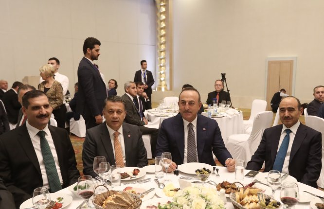 Bakan Çavuşoğlu, Azerbaycan'ın başkenti Bakü'de Küresel Gazeteciler Konseyince düzenlenen yemeğe katıldı.