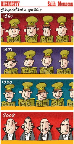 Memecan Türk Siyasetinin 1960'tan 2008'e geçirdiği evrimi dört karikatürle anlattı.