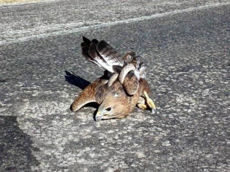 Yiyecek arayan şahin, iyi bir zamanlamayla süzülerek karayolu üzerindeki yılanın başını pençesiyle kavradı. Ancak yılan da ani bir bir reflesle şahinin kanatlarına sarılarak etkisiz hale getirdi.