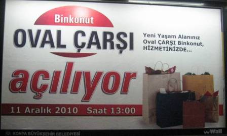 Bu hafta açıkhavada yoğun frekans alarak bizlere mesajlarını ulaştırmaya çalışan bir iletişim vardı. Konya’mızın önemli yatırım şirketlerinden biri olan A Proje’nin Oval Çarşı açılışı iletişimi. Binkonut Oval çarşı açılıyor diye basit ve silik bir iletişimle duyurum yapılmış. Diğer alışveriş merkezlerinden ne farkı var diye sormak lazım. Yani yapılan işte bir kimlik yok.