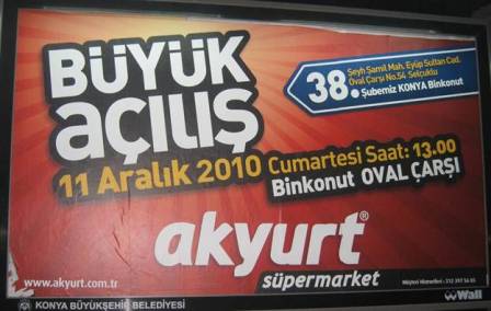 Akyurt açıldı diye yapılan iletişim de sanki “Büyük Açılış” diyerek büyük beklentilere sürükleniyor. Ama açılan Akyurt’muş diye küçülerek geçiştirilen bir hale getiriliyor. Akyurt markasının da yine ulusal bilinirliği yok. Hatta bilinirlik olmayınca sanki yeni bir yurt mu açılıyor diyor insan, öyle değil mi? Kurumsal kimlik de kötü tasarlanmış. Çünkü isim de yurt ürününe yönlendirme tehlikesi olduğu için market ismi daha görünür ve belirgin kimlikte olmalıydı. Bu şekilde yapmazsanız bol frekans almak zorunda kalırsınız. Akyurt süper marketlerinin internet sitesinde dolaştım. Çok kötü bir internet siteleri olduğunu gördüm. Bilgiler daha yapım aşamasındaymış. Bu iletişim arızalarını kısa sürede düzeltmelerini ve yeni yatırımlarında bol kazançlar dilerim.
