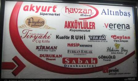 Tek ulusal bilinirliği olan marka ismi herhalde Altınbaş olsa gerek. Yerel bilinirlik ise Havzan etliekmeğe ait. Yani Altınbaş’ı bilenler bu reklamdan Altınbaş’a koşsun diye, Havzan etliekmeği bilenlerde etliekmek yemek için bu çarşıya koşsun diye yapılmış bir iletişime şahit oluyoruz. Yani bu iletişimi yapmaya gerek var mıydı? Hiç gerek yoktu! (Rakip çarşı ya da alışveriş merkezleri kendi markalarını saysalar kim kimi geçer!) Oval çarşıya daha başlangıçta yazık etmişsiniz yani. Yazık eden kim? Tabiî ki reklam mantığı.